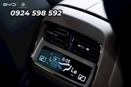 Màn hình cảm ứng giải trí trung tâm lớn với kích thước lên đến 15,6 inch có khả năng xoay ngang/dọc đặc trưng của các dòng xe BYD, cùng với màn hình hiển thị head-up W-HUD, giúp người lái dễ dàng điều chỉnh và truy cập vào các tính năng. Việc sử dụng màn hình HUD giúp giảm số lượng nút bấm cơ học, tạo ra một giao diện hiện đại và thân thiện hơn với người dùng khi sử dụng xe BYD. Phía dưới màn hình là cửa gió điều hòa, sạc điện thoại không dây và cần số dạng BYD – Heart, được thiết kế tối ưu không gian và tạo sự thuận tiện cho tất cả các thành viên trong gia đình.
